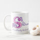 Letra tirada mão decorada com seu próprio começo conhecido com a caneca do significado de S e de nome. O capital bonito S do coração e da flor doodled o design tipográfico que caracterizam corações e flores e a beleza doce de Shireen A das palavras, delicado e tipo no rosa e no roxo. Arte e design originais do © por Sarah Trett. www.sarahtrett.com para www.mylittleeden.com no zazzle
