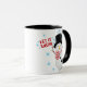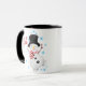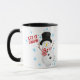 Esta é uma engraçada caneca com tema de inverno, apresentando um boneco de neve dançando na neve vestindo um chapéu e cachecol, com as palavras "Deixe-a nevar". Dê-lhe esta caneca sozinha ou encha-a com chocolates, doces ou outros favores e embrulhe-a em celofane com arcos.