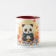Adorable petit panda faisant griller un marshmallow au-dessus d'un petit feu de camp, en forêt par un bel après-midi d'automne