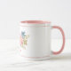 Esta linda caneca personalizada apresenta flores de aquarela em cor rosa pastel e cor de pêssego com folhas verdes e azuis/cinzas sobre fundo branco. Personalize-o clicando no botão "Personalizar" e adicione seu próprio nome, altere o estilo da fonte, o tamanho da fonte e a cor da fonte, conforme desejar. Ideia perfeita de presente para uma pessoa romântica.
