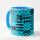 Caneca Design de Correção de Padrões Mistos Azul Preto