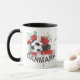 O grampo do futebol e do futebol de Dinamarca Danmark projeta em vermelho branco preto e esverdeia a bola de futebol do efeito do grunge de A e a bota do futebol com a bandeira dinamarquesa vermelha e branca e grama a arte colorida no grande presente do fundo para todo o fã de futebol de Danmark Dinamarca, ou o suporte dinamarquês do futebol. sgb01
