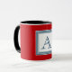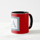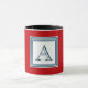Design de monograma de estilo náutico com decoração de quadrados com quadrados com quadrados com risca em fundo vermelho