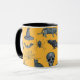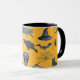 É hora do Dia das Bruxas! Bonita caneca de design do Halloween. Todos os seus ícones favoritos de Halloween - crânios, gatos pretos, aranhas e morcegos. Faz um Halloween divertido e assustador!