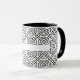 Uma caneca de café decorada com designs elegantes tradicionais, combinando detalhes sutis com linhas clássicas para um toque de sofisticação do eterno.