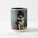 Dessin chien berger australien dans une rue le soir avec un chapeau haute forme.