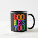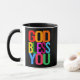 Deus abençoe Você estilizou, texto elegante. Cada letra de uma cor individual. Positivo, cristão, caneca de café aplausos para qualquer um. Você pode transferir este design para outro produto, basta usar a opção a seguir. Divirta-se, comprar, aproveite, fique seguro e seja feliz!