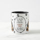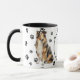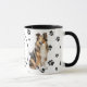 Um belo Cachorro Collie se senta em dois lados desta caneca. O texto entre as duas imagens diz "No oitavo dia, Deus criou o CÃO COLLIE e o chamou de MUITO BOM". As imagens do cão e o banner branco oval que contém os campos de texto são colocados sobre um fundo branco com impressões de pata preta.