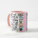 Deus está dentro dela: Salmo 46:5 caneca cristã. Uma borda floral de aquarela em pintas e púrpuras suaves rodeia um elegante roteiro de ouro que diz "Deus Está Dentro Dela, Ela Não Cairá", personalizado com o nome.
