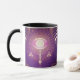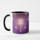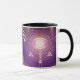 Olho Místico Escuro da Eternidade Mug apresentando um escuro e místico canavial egípcio. Perfeito para amantes de sigilos ocultos góticos escuros e sigilos de símbolo oculto. Símbolo da cana-de-olho-escuro roxo e dourado cercado por símbolos ocultos de sigilos da cana e designs esotéricas. Brilhando com uma estranha luz roxa que emana uma estranha e oculta presença.