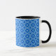 Quer embelezar o dia de alguém? Nossa caneca mágica pode parecer simples à primeira vista. Mas quando derramar uma bebida quente na caneca brilhante de cerâmica preta, você ficará surpreso... é mágico! Esta caneca é uma ajustado perfeita para fazer um presente para alguém ou apenas para você! São contornos abstrato, azuis e brancos, o padrão repetitivo de diamantes é a melhor escolha para sua natureza estética.