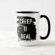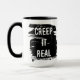 Dia de as Bruxas engraçado de café com design de pincelada preta ousada e a frase "Creep It Real". Uma escolha divertida para manhãs de época assustadora, presentes de Halloween, ou deskware de escritório com senso de humor. Perfeito para café, chá ou cacau quente durante as festividades de outubro.