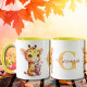A design apresenta uma girafa adorável segurando uma bebida de boba, sentada em um chão adornado com um coração. Nomeadamente, o design oferece personalização com a adição de uma letra/inicial e um nome de sua escolha. Esta criação encantadora serve como um presente delicioso e personalizável, perfeito para expressar afeto aos seus entes queridos e fazer-la como uma ideia única de presente de Dia de os namorados.