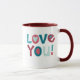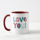 Esta caneca apresenta as palavras, "ama-te". O dentro é vívido em cores ricas. Dê este presente divertido a alguém que você ama! Projetado para você por Blackberry Boulevard.