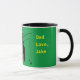 A caneca dia de os pais com pai e filho pescando fora do cais pode ser personalizada com o nome do filho.