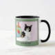 Um gato de smoking preto e branco desejando ao seu gato pai um Dia de os pais Feliz e avisando a todos que eles têm o melhor pai de gato!