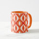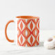 A caneca de café em um teste padrão moderno do diamante do meio século do marquise aninhado dá forma - à laranja coral clara e profunda, com branco, e acentos escuros da tanjerina