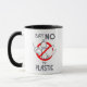 Este trabalho de arte apresenta a frase Diga não ao plástico.