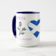 Esta engraçada caneca de apoiantes da independência da Escócia do Reino Unido mostra a frase escocesa, "Dinna fash yersel and say aye", que significa staty calmo e diz sim no lado direito. Aqui, o vinho escocês é flanqueado por dois leões desenfreados no famoso tartan Royal Stewart. No meio está a bandeira escocesa dentro a forma de coração. Do lado esquerdo da caneca, figura uma ilustração de um palito escocês, a flor da Escócia, e a expressão "Sim, Escócia". Os designs inspiram-se no referendo de 2014 sobre a independência da Escócia. A caneca seria o presente perfeito para amigos escoceses e familiares que são apoiantes da independência da Escócia e que provavelmente dirão sim no referendo.