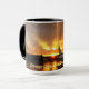 Caneca do bebendo que caracteriza uma cena do por do sol no aeroporto internacional do O'Hare de Chicago, tomado após um temporal. Foto por Chris Holmes.