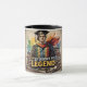 Um design de caneca inspirador com um formando confiante em bonés e pilhas de livros de capa. O texto "DE ESTUDANTE A LEGENDA" é exibido com destaque, celebrando a jornada transformadora da educação e da graduação.
