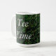 Colagem da foto: bola de golfe na grama verde. Expressão: TEMPO DO T.