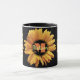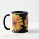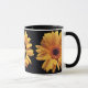 Criar seu próprio monograma bonito da flor com este design que caracteriza uma única margarida amarela lindo contra um fundo preto. Substitua o texto da amostra com seus próprios para um presente personalizado.