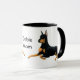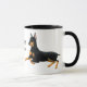 O design original das belas artes de cães do Pinscher do Doberman pelo desenhista Carolyn McFann do estúdio de ronrom de dois gatos em uma caneca customizável para o Doberman ventila.