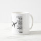 a caneca branca com os pilotos do alfabeto fonético usa-se ao comunicar-se do avião.