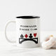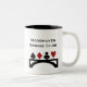 Caneca de café de jogador de ponte feita no branco, com os gráficos de um símbolo preto da ponte e dos ternos vermelhos e pretos do cartão, na parte superior. Personalize o texto preto para ler o que você quer. Excelente para clubes e competiam de ponte.