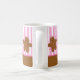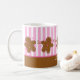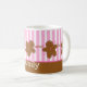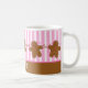 Caneca customizável do Natal com uma fileira adorável de poucos homens de pão-de-espécie com os narizes cor-de-rosa dos doces e o glacé do botão e o branco. Beira listrada do rosa e a branca do fundo e do pão-de-espécie. Tag do presente, cartões de nota, selos postais, artigos de papelaria coordenados e ímãs também disponíveis! Original de PinkInkArt!
