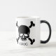 A caneca discreto do grog do pirata é preta até que você adicione uma bebida quente, a seguir o crânio do Grog e o design cruzado dos ossos aparecem.