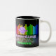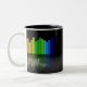 Caneca legal do Dois-Tom que caracteriza nosso design da sessão da gravação, com nossos logotipo da música de MoonDreams e gráfico do equalizador da música - excelente para músicos no estúdio de gravação