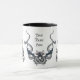 Repetindo o teste padrão com os dragões brancos entrelaçados em torno da caneca com os dragões do centro mais distante assim você pode adicionar seu próprio nome.