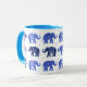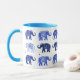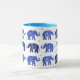 Caneca de café à moda com um elefante e um teste padrão de bolinhas azuis e brancos. Personalize para adicionar todo o texto que você quiser. Grande caneca para a casa ou o escritório.