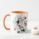 Esboce a caneca que caracteriza o caráter animado, papagaio-do-mar, do filme clássico da princesa da cisne. Seus borda e punho são alaranjados que faz o contraste coloristic à superfície branca da caneca com formas pretas dos caráteres tirados colocados nela e faz a referência às partes do caráter coloristic. Inclui o logotipo oficial da princesa da cisne. Este design está igualmente disponível em dois tamanhos das placas e faz a parte de uma coleção de jantar mais grande. Procure suas outras partes na loja da princesa Zazzle da cisne!