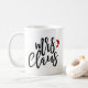 Esta caneca festiva do feriado caracteriza a Sra. Claus em um roteiro preto moderno com um chapéu pequeno do papai noel na extremidade da Sra. da palavra.