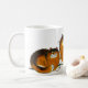 A caneca é de excelente qualidade, de bom peso e aparenta resistentência. O tamanho grande da caneca de 444 ml é muito prático, ela serve até para sobremesas. A alça é do tamanho certo para empunhadura, e oferece grande firmeza. A impressão ficou perfeita, a imagem ficou completamente nítida, e as cores vivas como na imagem do site.