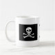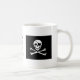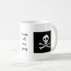 Uma bandeira de pirata alegre de Roger decora ambos os lados desta caneca com um aviso no centro, as "mãos fora de meu grog!" Personalize como querido!