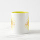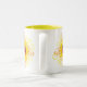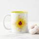 Um joaninha e um girassol bonito projetam em uma caneca de café.