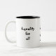 O símbolo do Kanji da igualdade decora esta caneca do café/chá. O texto adicional em cada lateral diz, "igualdade para tudo"…. esperançosamente em todos os aspectos da vida ...... aprecie e Namaste'.