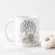 caneca branca de 11 onças com leão & cordeiro sob a árvore de azevinho - os trabalhos de arte pelo boi de lynn são em ambos os lados da caneca -- texto no meio - "nós podemos somente esperar" - quando apropriado para em qualquer altura que do ano, é especialmente agradável para a estação e/ou os presentes do Natal