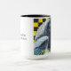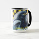 Esta caneca vem impresso com os trabalhos de arte feitos especialmente para a associação do cuidado dos animais selvagens por Stephanie Taylor, e representa um Magpie e uma facilidade Amarelo-Faturados da abóbada de WCA no fundo.