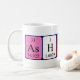 Ashton soletrou para fora como como H T O N (nitrogênio do oxigênio do trítio do hidrogênio do arsênico) em uma caneca para o cientista em você.