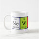 Newton soletrou para fora como Ne W T O N (nitrogênio de néon do oxigênio do trítio do tungstênio) em uma caneca para o cientista em você.