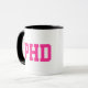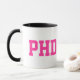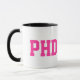 Uma caneca personalizada com o PhD escrito no rosa. Grande presente para PhDs novo.