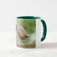 Caneca que caracteriza um pisco de peito vermelho do bebê