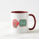 Uma caneca para os professores que caracterizam uma ilustração de uma coruja vermelha que está em um quadro. Personalize com seu nome no quadro. Artigos de harmonização Look for na escola cor-de-rosa.