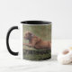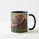As imagens headstudy e saltando do Retriever de baía de Chesapeake (Chessie) com nome da raça em um fundo da camuflagem fazem uma obra de arte fora desta caneca.