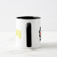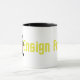 Bandeira Fraidy dos azuis alaranjados do gato em uma caneca de café da campainha. Escolha de seis cores e de dois tamanhos. Colocação da imagem projetada para bebedores destros do café.